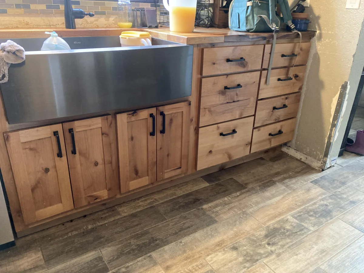 We construct our cabinet boxes with the highest quality plywood we can find. We do not use any MDF, melamine, or particle board in our construction. This makes our boxes more durable , waterproof and beautiful than any other cabinet on the market. Have you ever had a drawer face fall off? Have you ever had the bottom fall out of a drawer? Well we have, on many of the cabinets we have replaced. We install solid wood dovetail drawers in our cabinets so you don't have to worry about those things. We also believe that using the right hardware can make or break a good cabinet, that is why we use top of the line Blum products to make sure everything functions smoothly and quietly every time.